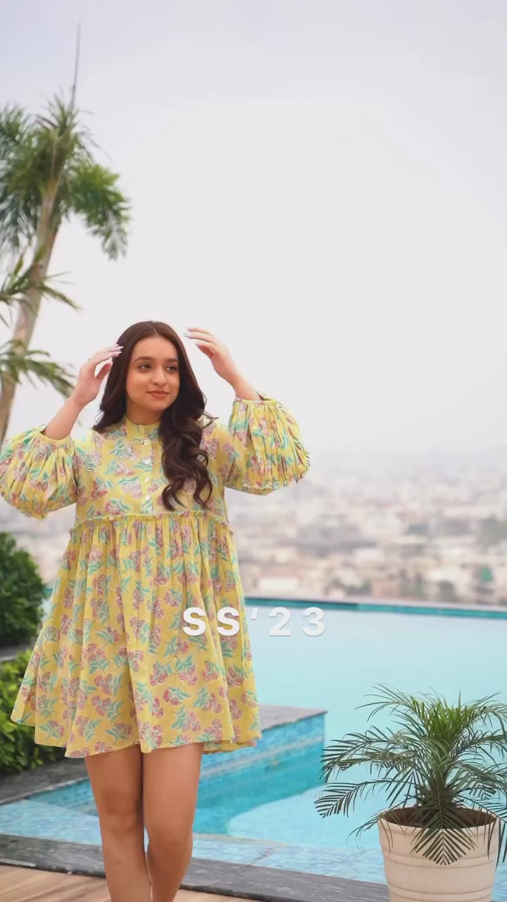 Colorful florals your way with striking statement lace detailing adorning full sleeves with elasticated hem and a zero neck with front opening. Gathered tiers make it a perfect fun summer dress.